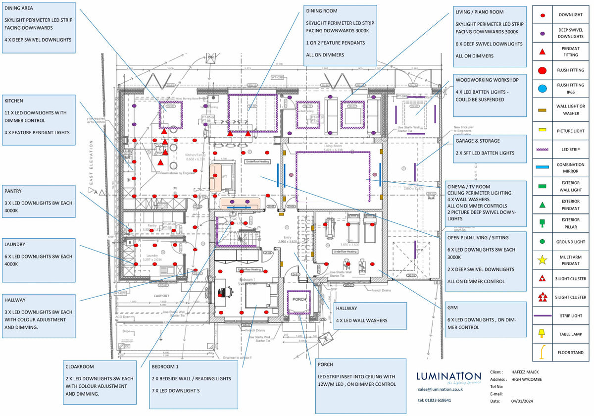 Start thinking about lighting design early in your new build or extension project. With architect drawings, we can work off-plan to consider a wealth of lighting options well in advance.